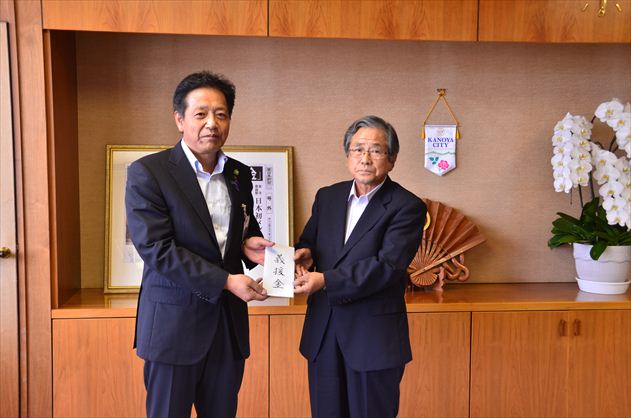 市民の皆さんから寄せられた広島市の土砂災害に対する義援金を市社会福祉協議会に寄贈しました。一日も早い復興を心より願っています。ご協力いただきました皆さまありがとうございました。
