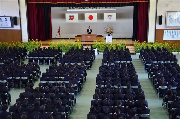第69回串良中学校卒業式に出席しました。9年間の義務教育を修了し、晴れて卒業される皆さんご卒業おめでとうございます。また、今日まで手塩にかけて育ててこられたご家族の皆さんに心からお喜び申し上げます。これからは、それぞれの道は違いますが「自主創造、協同責任、明朗真摯」の校訓の下に仲間と過ごした日々を誇りに、目標に向かって力強く歩んで行かれる事を願っています。