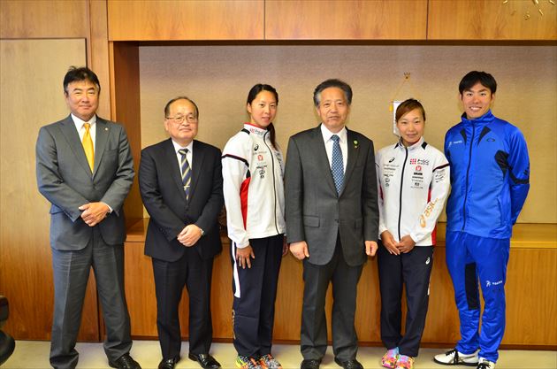トライアスロンチーム「チームケンズ」の監督と選手の皆さんが、今月12日から27日の期間で鹿屋体育大学を中心に合宿をしているという報告に来てくれました。トライアスロンという過酷なスポーツを通して夢を与えていただいていることに敬意を表します。