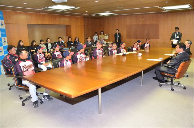 野里ソフトボールスポーツ少年団の監督、選手の皆さんが第42回鹿児島県ソフトボール大会において182チームの頂点に立ち、見事に優勝したとのことでその報告にきてくれました。これからの活躍がとても楽しみです。