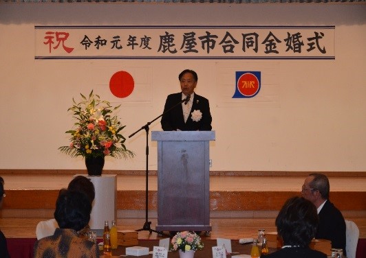 結婚して50年という長い年月に渡り、苦楽を共にされてきたご夫婦を祝福するとともに、今後とも、ご夫婦揃って元気で長生きしていただくことを祈念して、鹿屋市合同金婚式を開催しました。