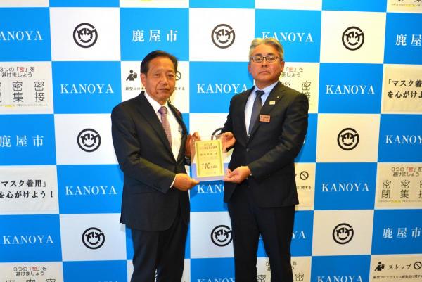 鹿児島県トラック協会の皆さんが、今年も鹿屋市内全小学校の新入学児童用として、交通標識が表示された定規の贈呈にお越しくださいました。