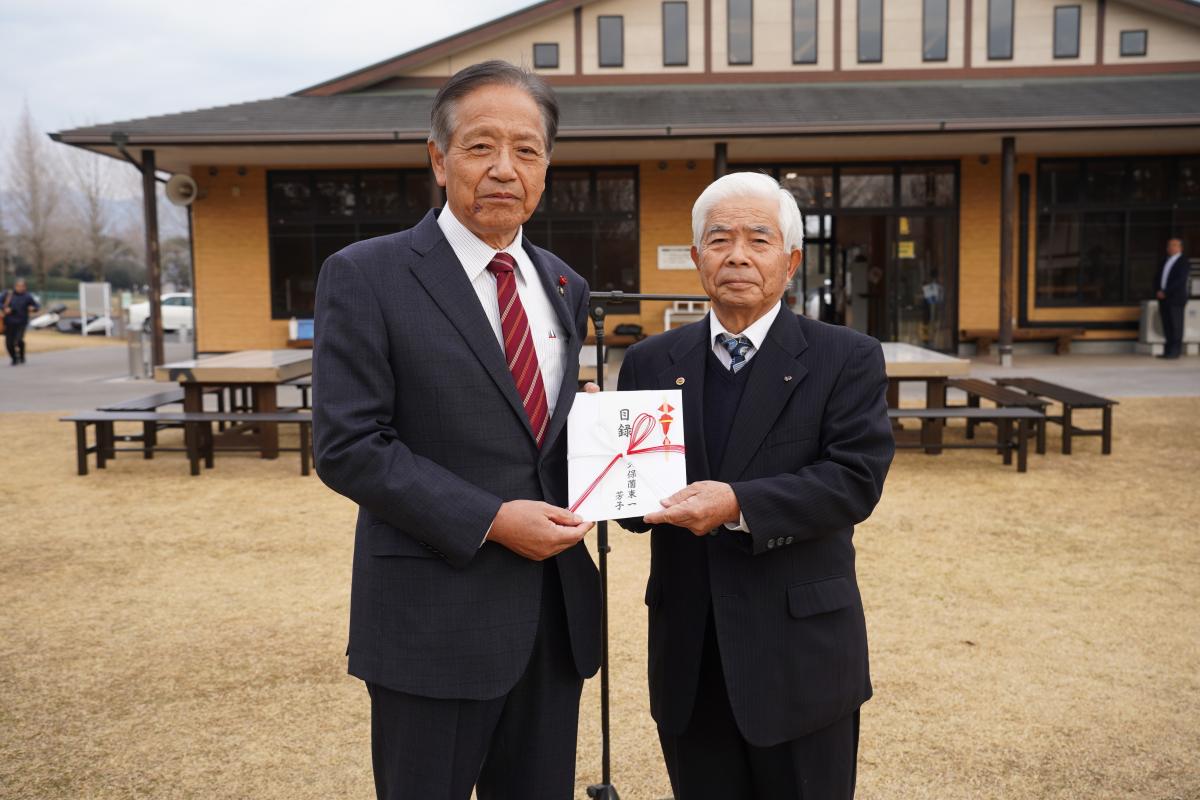 有限会社東久開発 会長 久保薗 東一 様より、かのやグラウンド・ゴルフ場へテーブル等のご寄贈をいただきました。