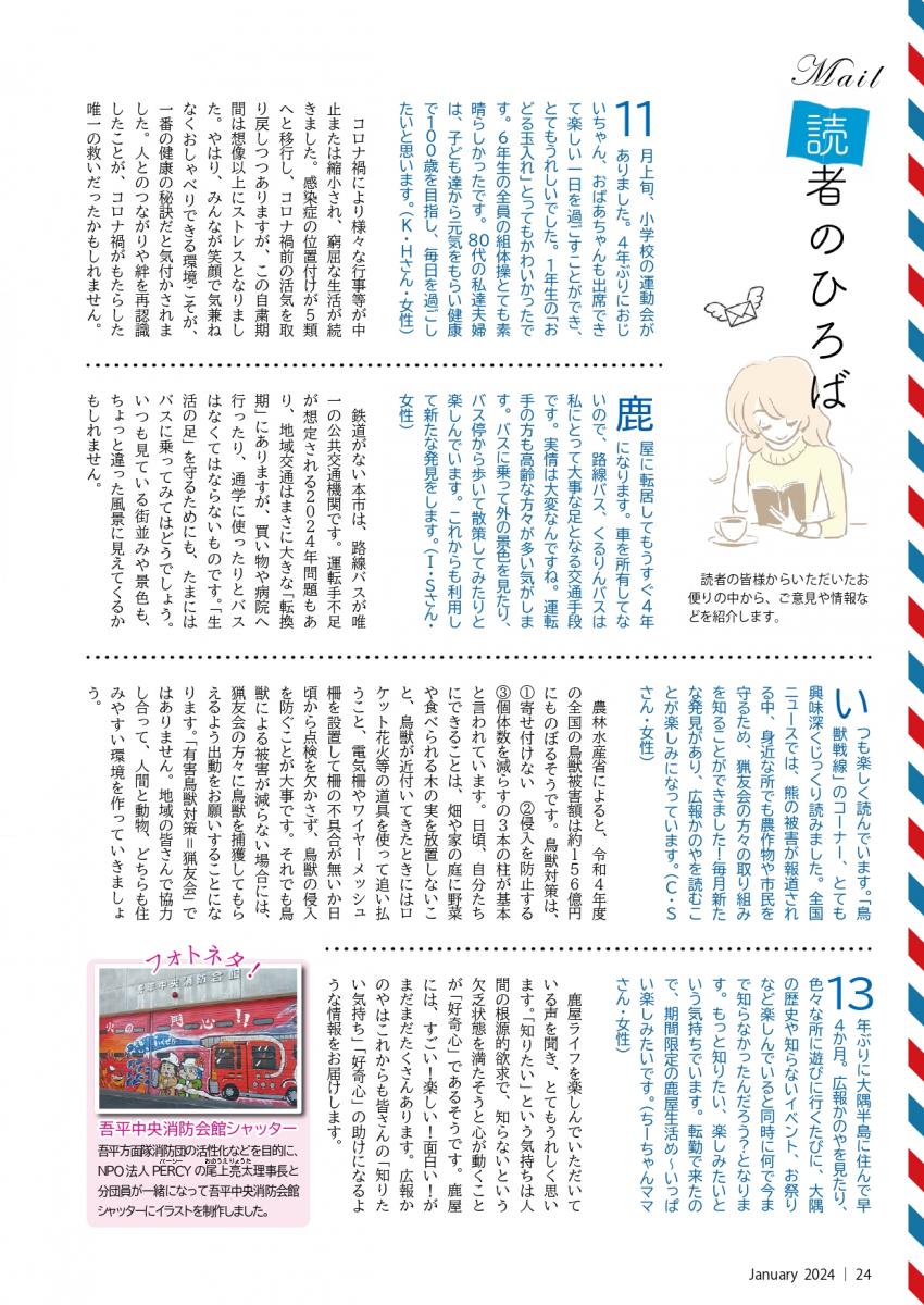 広報誌への感想や、市へのご意見のほか、地域のイベントや出来事、お勧めスポットなど多くの情報もお寄せください。