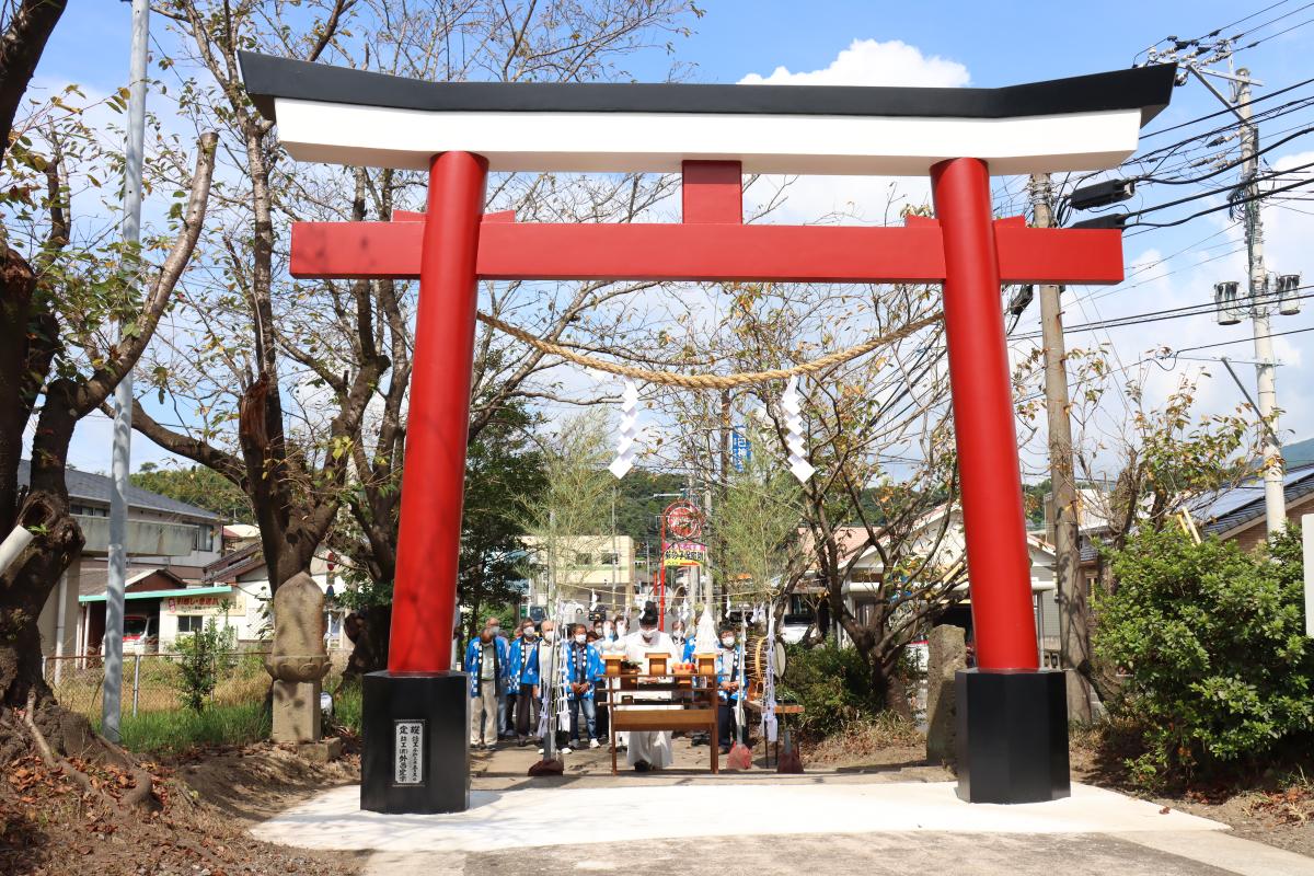 改築に伴う神事では、地元町内会の方々を中心に約20人が参列し、改築した鳥居の完成を祝いました。
