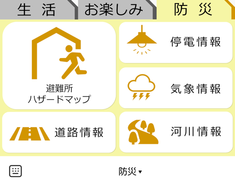 鹿屋市ホームページの「役に立つ情報」「申請」「ごみ」「観光」「イベント」「当番医」「交通」「防災」などの情報に、すぐにたどり着けるリンクボタンを掲載。
